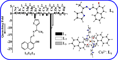 on the spectral features and provides a detection limit of 56.0 ± 0.6 ppb, the selectivity was hampered because of the presence of the derivatizations present on both the rims of L for ion