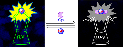 Dansyl-derivatized, triazole-linked, glucopyranosyl conjugates, 5FLOH, 2FLOH, 1FLOH, and 0FLOH were synthesized and characterized. While the 5FLOH acts as a molecular probe for CN–, 2FLOH, 1FLOH, and 0FLOH acts as control molecules. The reactivity of CN– toward 5FLOH has been elicited through the changes observed in NMR, ESI MS, emission, and absorption spectroscopy. The conjugate 5FLOH releases a fluorescent product upon reaction by CN– in aqueous acetonitrile medium by exhibiting an ~125-fold fluorescence enhancement even in the presence of other anions. Fluorescence switch-on behavior has been clearly demonstrated on the basis of the nucleophilic substitution reaction of CN– on 5FLOH. A minimum detection limit of (2.3 ± 0.3) × 10–7 M (6 ± 1 ppb) was shown by 5FLOH for CN– in solution. All the other anions studied showed no change in the fluorescence emission. The utility of 5FLOH has been demonstrated by showing its reactivity toward CN– on a thin layer of silica gel as well as on Whatman No. 1 cellulose filter paper strips. The role of glucose moiety and the penta-fluorobenzenesulfonyl reactive center present in 5FLOH in the selectivity of CN– over other anions has been demonstrated by fluorescence, absorption and thermodynamics study. Similar studies carried out with the control molecules showed no selectivity for CN–. The mechanistic aspects of the reactivity of CN– toward 5FLOH were supported by DFT computational study. Go to article |