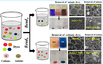 The availability of potable water is one of the major concerns in many countries today. This brings in a need to design molecular scaffolds suitable for efficient adsorption of the contaminants present in water. In this paper, an unprecedented strategy is demonstrated in order to synthesize highly porous bovine serum albumin_Au (BSA_Au) beads and was employed for the removal of water contaminants. The beads stored in acidic medium (Beada) and in basic medium (Beadb) selectively adsorb anionic and cationic species that includes organic dyes and inorganic species, respectively, by showing a pH-responsive behavior. This phenomenon bestowed the beads with the recyclability and reusability as demonstrated for eight cycleswherein almost 100% efficiency is retained by the beads without any deterioration. The porous nature of these beads is retained even after switching the pH for several cycles of adsorption−desorption processes as judged based by the SEM data. Thus, the reported beads are demonstrated for their selective and efficient removal of both organic and inorganic contaminants from water wherein the beads can be recycled by triggering pH changes that would also release the captured species. The biologically benign beads act as reusable smart nanofactories in the purification of water from industrial contaminants. Go to article |